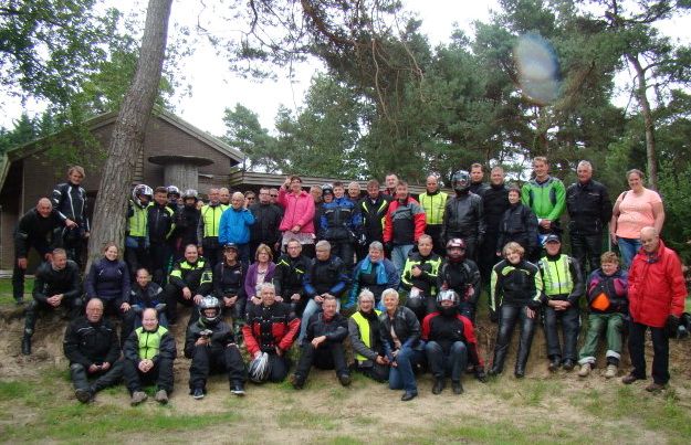 Na een uurtje was iedereen, voldaan en uitgerust, weer klaar voor vertrek. Maar voordat de motoren gestart werden moest er natuurlijk eerst een groepsfoto gemaakt worden. Toen iedereen vrolijk lachend op de “gevoelige plaat” was vastgelegd vertrokken we met ronkend motoren voor het tweede deel van de rit.