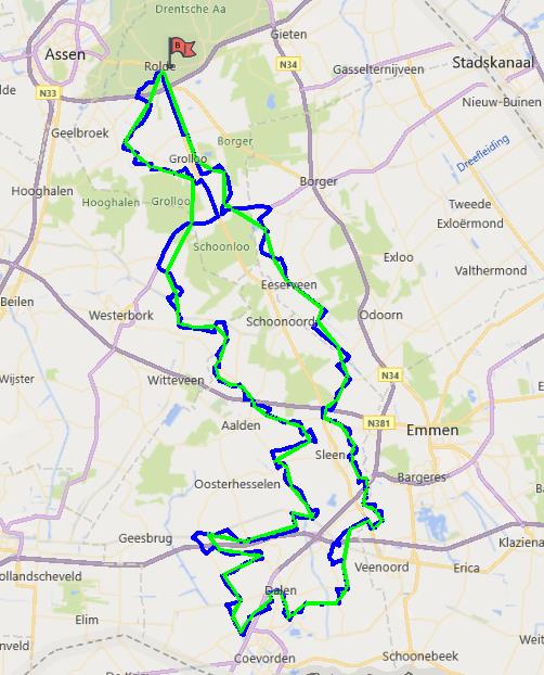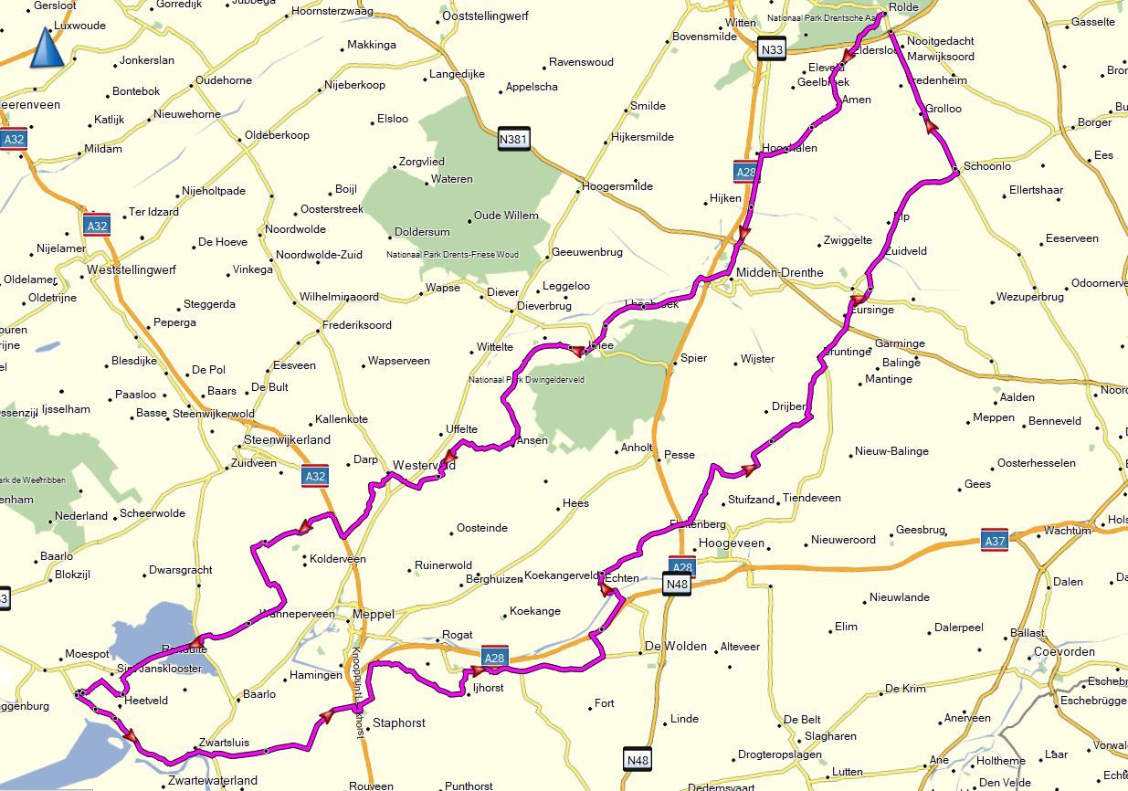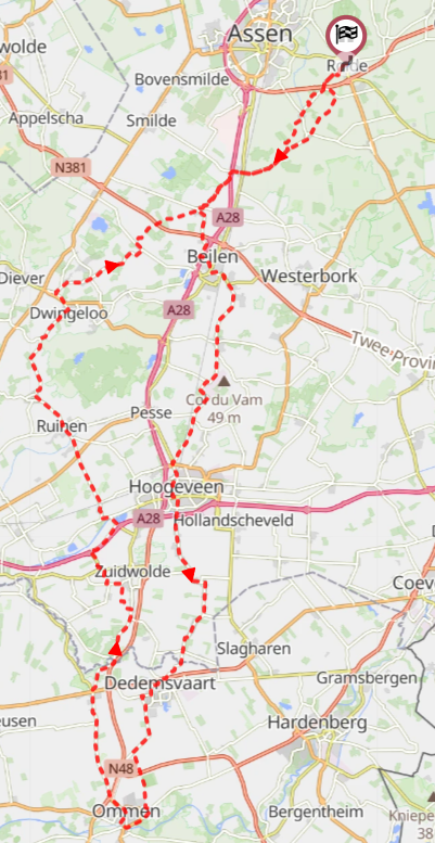 De rit ging naar het zuiden. Via kronkelweggetjes langs Orvelte en het meest zuidelijke punt was tot aan Coevorden met een koffiestop