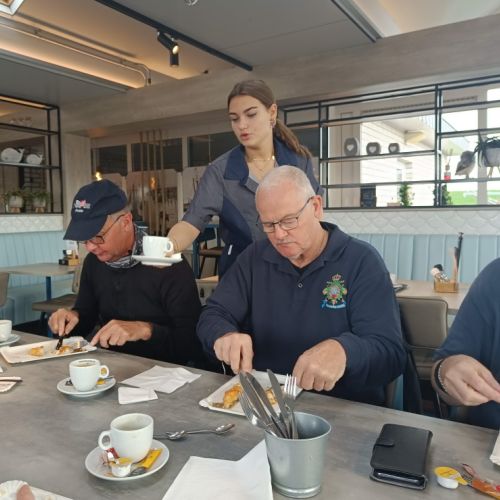 De haring rit was wederom uitgezet door Rikus Rijnberg en ging richting Noord Groningen waar de koffiestop was gepland. We gingen op weg richting Spijkerboor, Slochteren en Steendam. De weg was nog wel nat van de regen maar onderweg gelukkig maar een paar spatjes regen gehad. Rond 11 uur hadden we de gezellige koffiestop bij vispaleis Westerhuis in Termuntenzijl. De haringen en lekkerbekjes gingen er lekker in, en dat onder het genot van kopjes lekkere koffie.