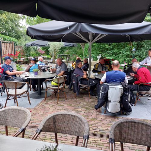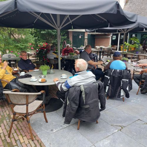 De rit van 16 juli voerde ons naar de kop van Overijssel waarbij de koffiestop werd gehouden bij koffie en thee schenkerij De Oldenhof in Vollenhove.