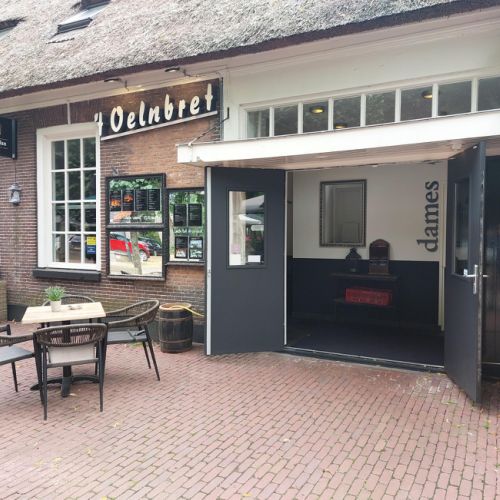bij restaurant ’t Oelnbret in Dalen, mooi terras aan de achterzijde van het restaurant.