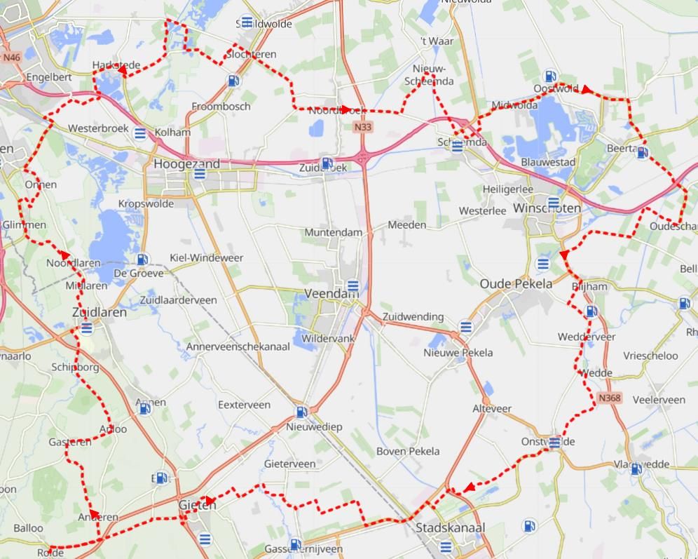 De tocht ging door het mooie Drentse en Groningse landschap van 144 kilometer: