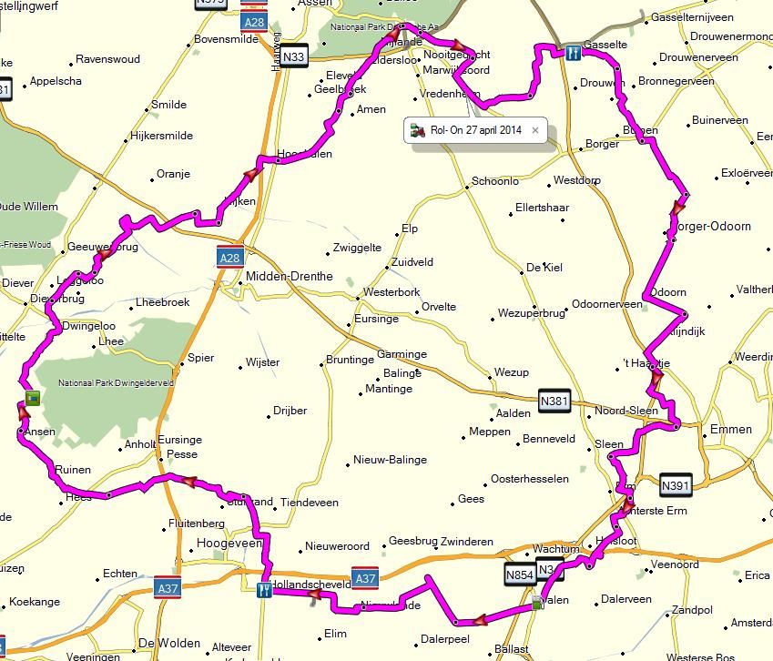 Hierna reden we richting Steenwijk en vervolgens via Wapserveen, Hijken en TT-circuit weer terug naar de molen in Rolde.